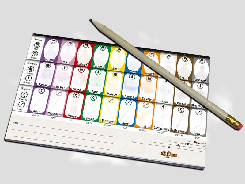 The city of London has been shaken by heinous crimes, and Scotland Yard is groping in the dark. 13 Clues, set at the end of the 19th century, puts players in the shoes of the detectives, each trying to solve their own mystery. Each player sees the clues — person + location + weapon — for the other players but not their own. They investigate by asking questions, by consulting the secret informant, and by making accusations in order to collect clues and rule out suspects. The goal of the game is to identify which of the 13 clues match their case before the others do!