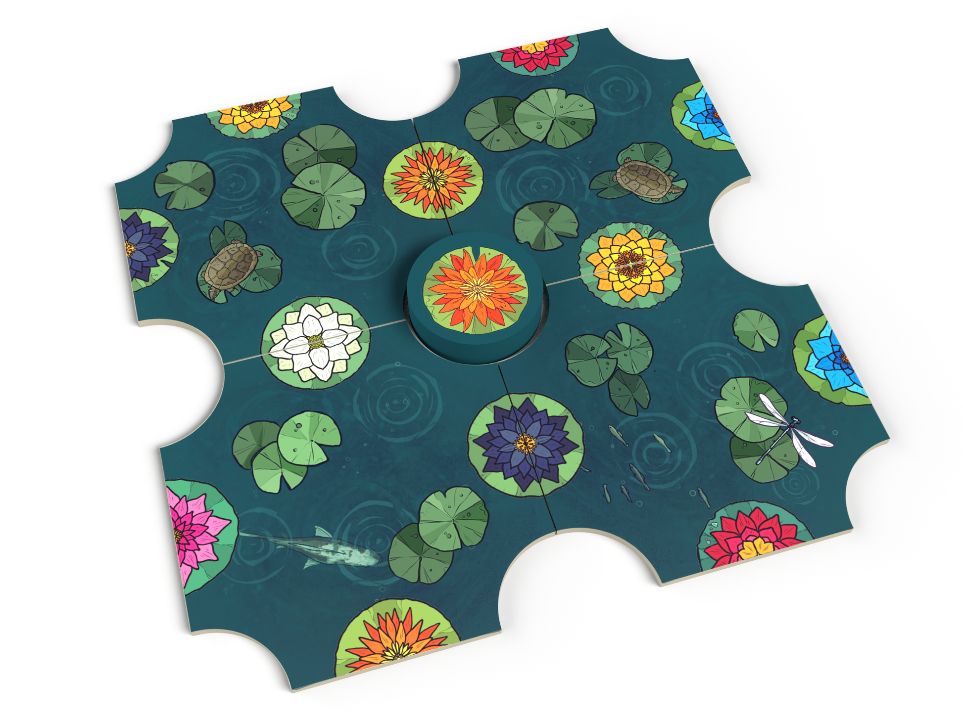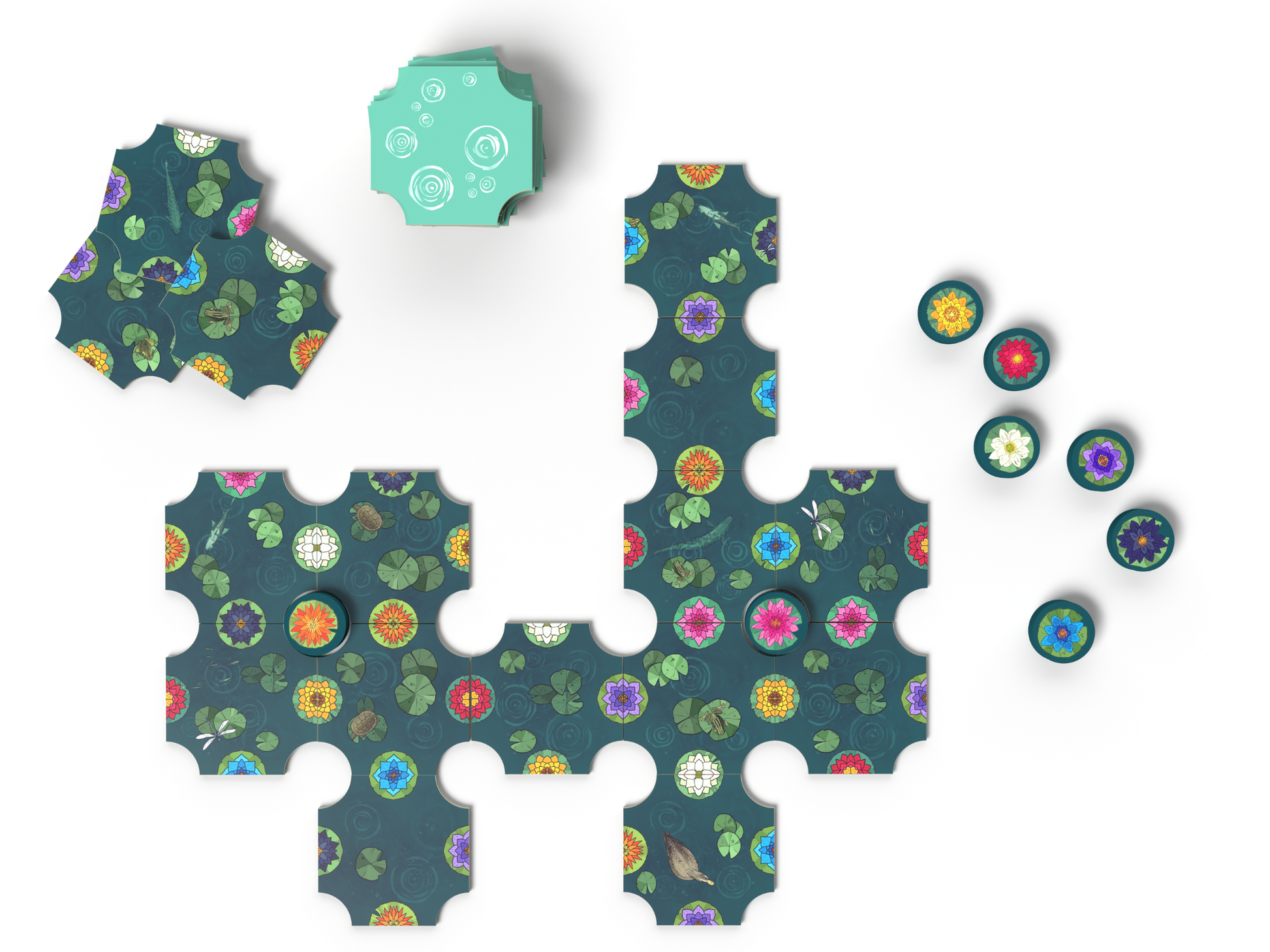 Step into “A Gentle Rain”, a tranquil retreat to a quiet lake that will center your mind. Journey alone or with a fellow wanderer, thoughtfully placing each exquisite tile down…coaxing the eight blossoms to bloom, one by one.