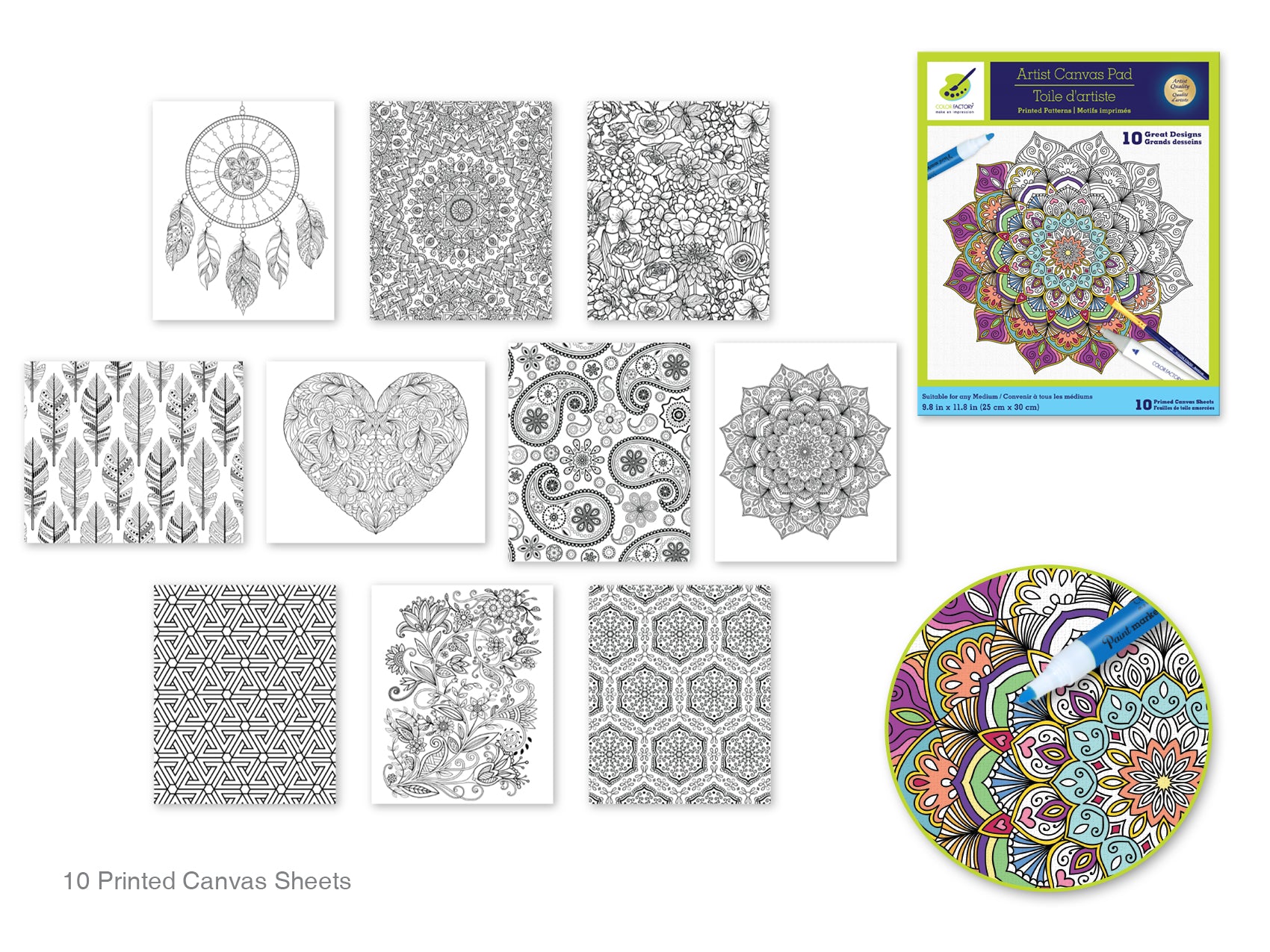 Color Factory: 9.8"x11.8" Canvas Pad w/Design Outlines 10Sheet Asst Abstract Art