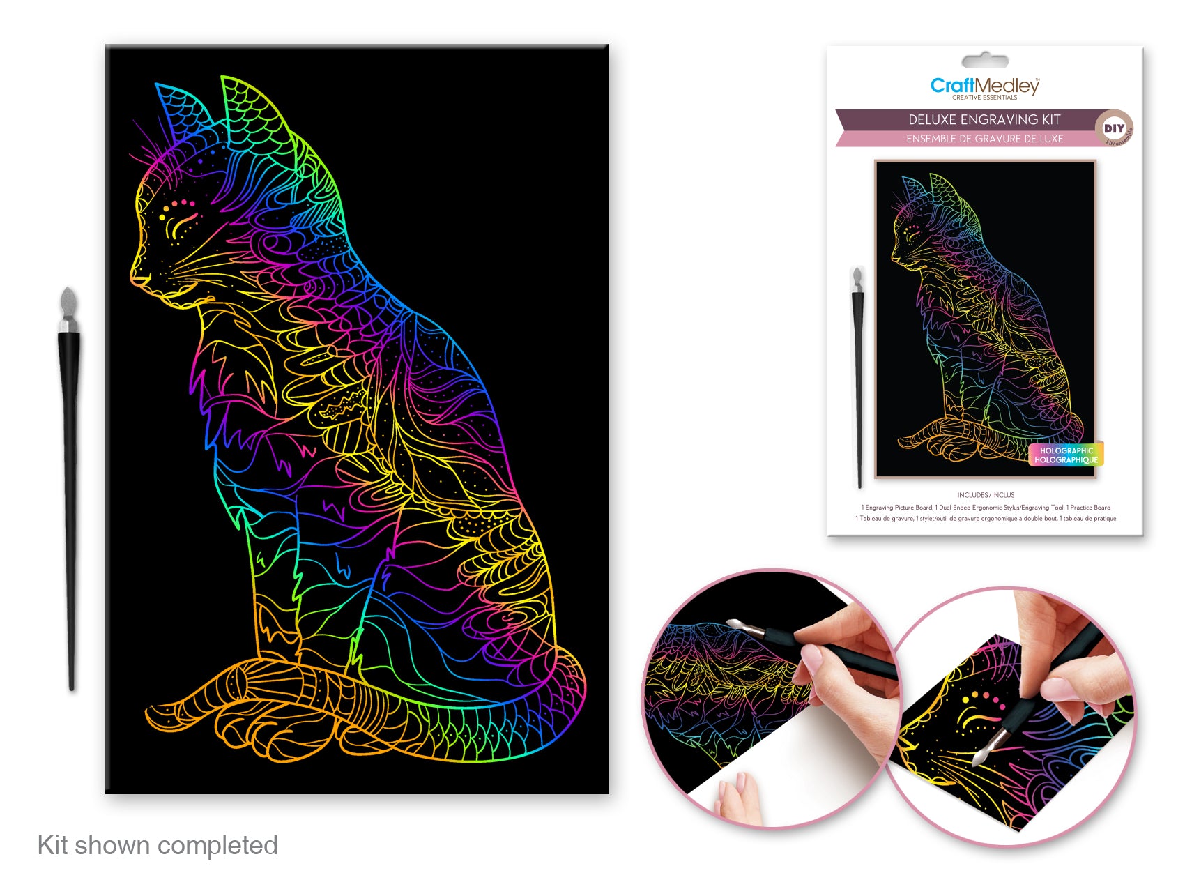 Craft Medley Kit: Deluxe Engraving Art DIY Kit Holographic~ Cat
