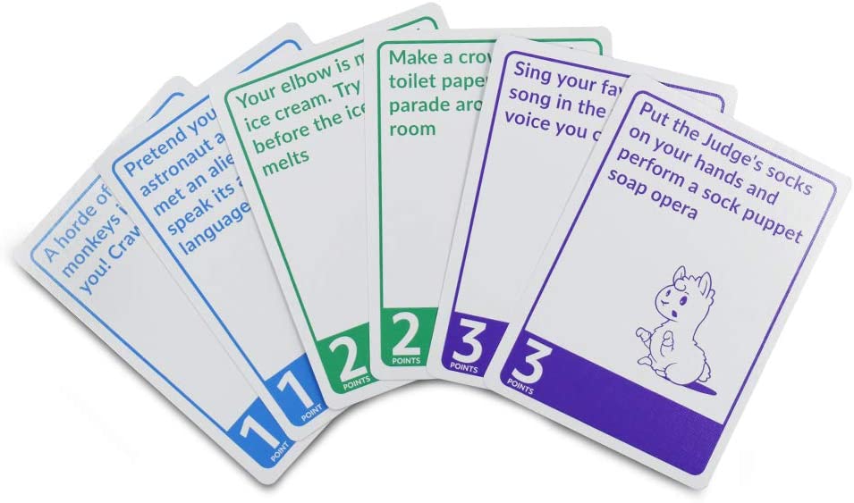 Like Daring Contest, but don’t want to embarrass yourself in front of your parents (or kids)? This version keeps all the fun of Daring Contest but with a family-friendly set of dares and penalties!
