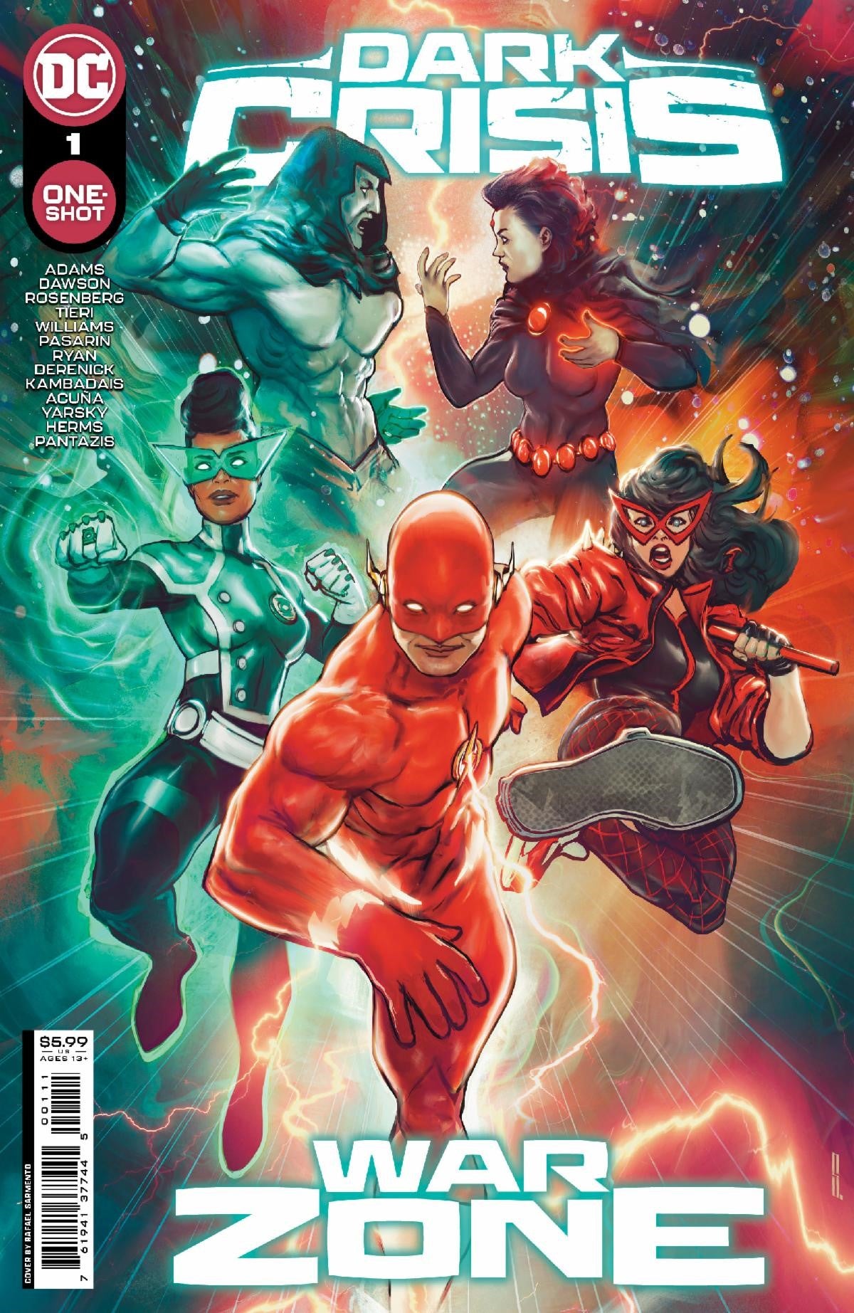 A BOOTS-ON-THE-GROUND VIEW OF DARK CRISIS! Written by Matthew Rosenberg, Delilah S. Dawson, Jeremy Adams, Frank Tieri, and Stephanie Williams Art by George Kambadais, Daniel Bayliss, Fernando Pasarin, Matt Ryan, and Serg Acuña As the Hall of Justice falls, get new perspectives on the various conflicts while the battles across Dark Crisis rage on! With the classic Justice League members gone, see how members of the next generation such as Red Canary and The Flash Family deal with the chaos in this key chapter of the saga leading into Dark Crisis #7.