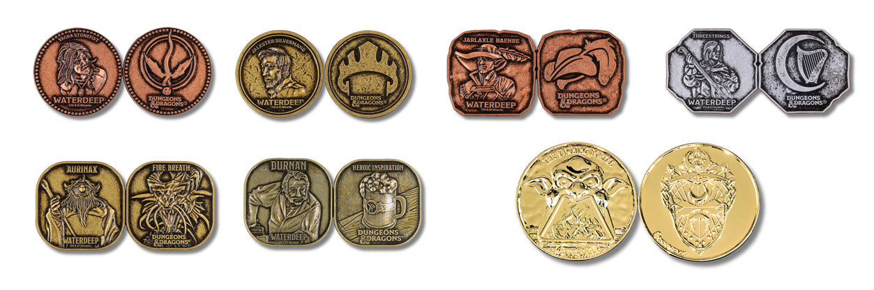 - 29 Possible coins - Features new character-inspired coins with Durnan & Volothamp Geddarm