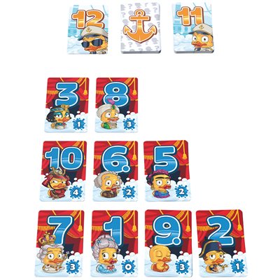 Duck& Cover is a 20 minutes goofy game in which you're trying to have the less water around your bathtub. You will either duck your ducks by moving them around your grid or cover your duck cards with other ducks. You have 3 rounds to get the lowest score and to not have water everywhere. Your ducks will love that for sure !