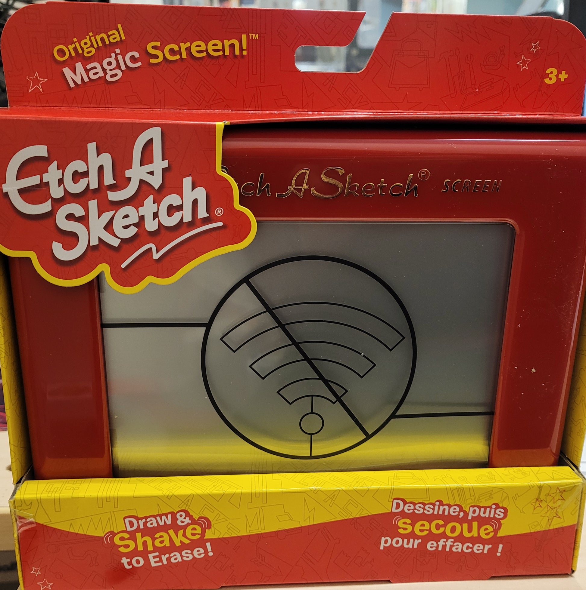 Etch-A-Sketch, the world's favorite drawing toy is now available in its original 1960 package design. Turn the knobs, draw on the screen, then shake the Etch-a-Sketch to erase your creation!