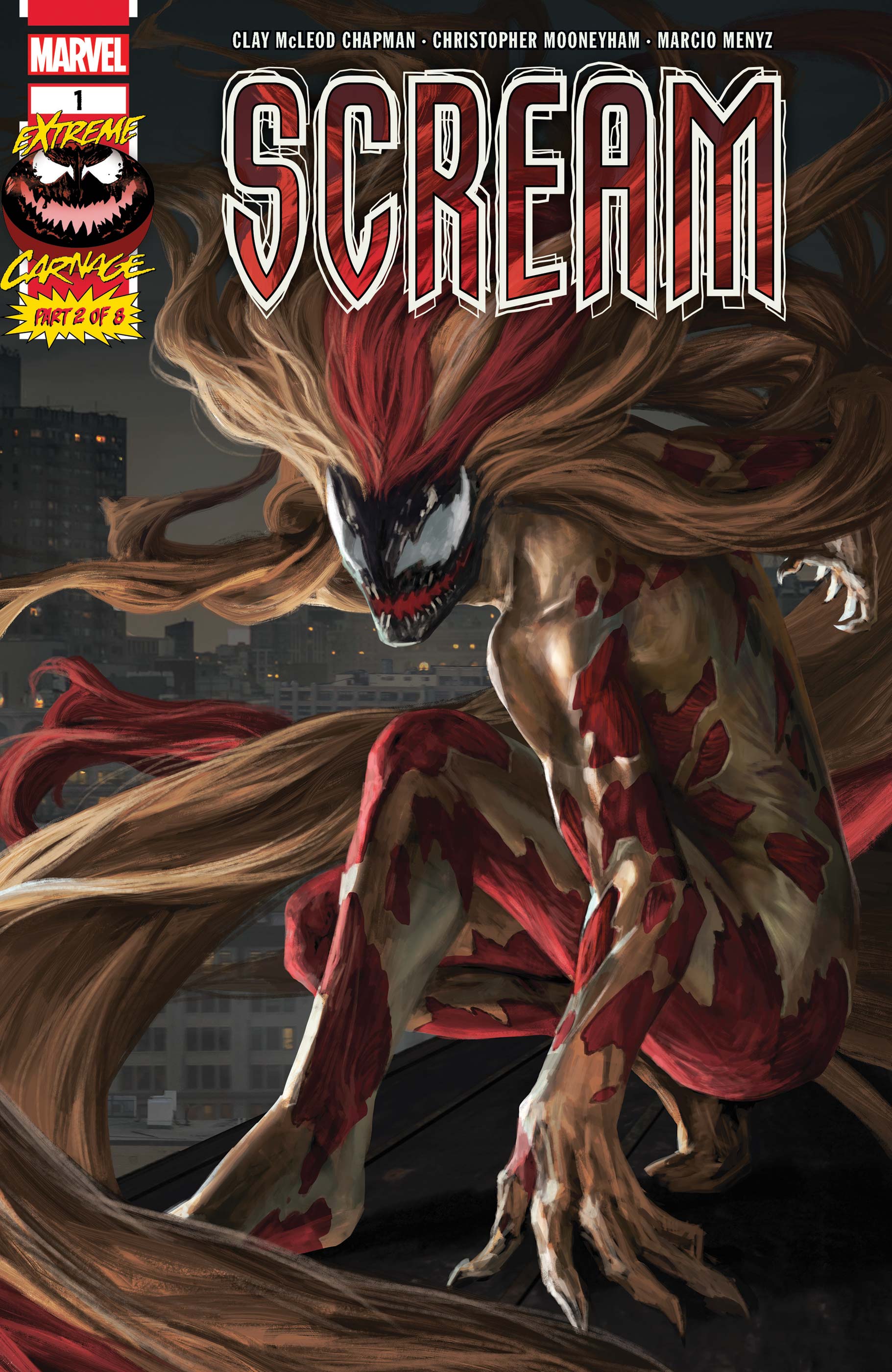 SCREEEEEAM! SCREAM: CURSE OF CARNAGE writer Clay McLeod Chapman returns to the character to lend his lethal sensibilities to EXTREME CARNAGE! Andi Benton has always been a fighter, and that’s never been truer than since she bonded to the Scream symbiote a few months ago. But even after ABSOLUTE CARNAGE and KING IN BLACK, Andi has never had to fight like this — and, worse still, if she can’t save her symbiote from whatever unseen force is affecting it, she might have to do it alone…