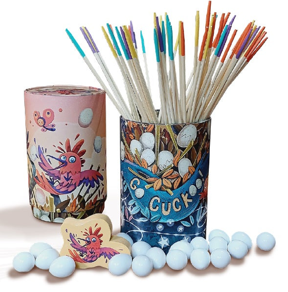 Help Kiki the cuckoo build her nest! In this funny dexterity game, you must place sticks into the nest so that they support the eggs. But do it carefully, because with one false move and the whole structure could come crashing down. Winner of the prestigious As d’Or “Best Children’s Game”, Go Cuckoo! is an ideal game to enjoy with the family.