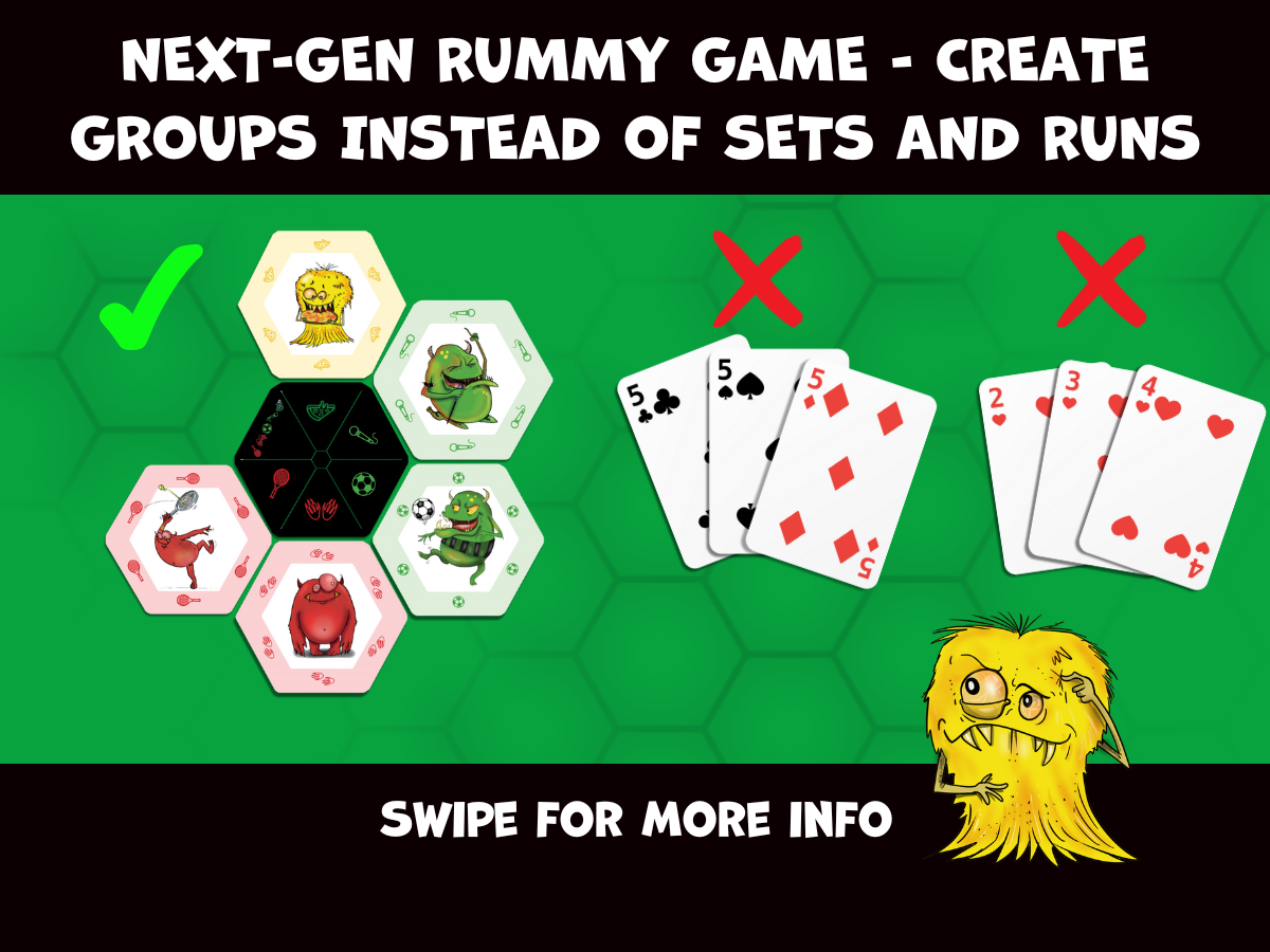 Groopic Monster's Style - Refreshing Rummy-Style Gameplay with Simple Rules and Quick Rounds.