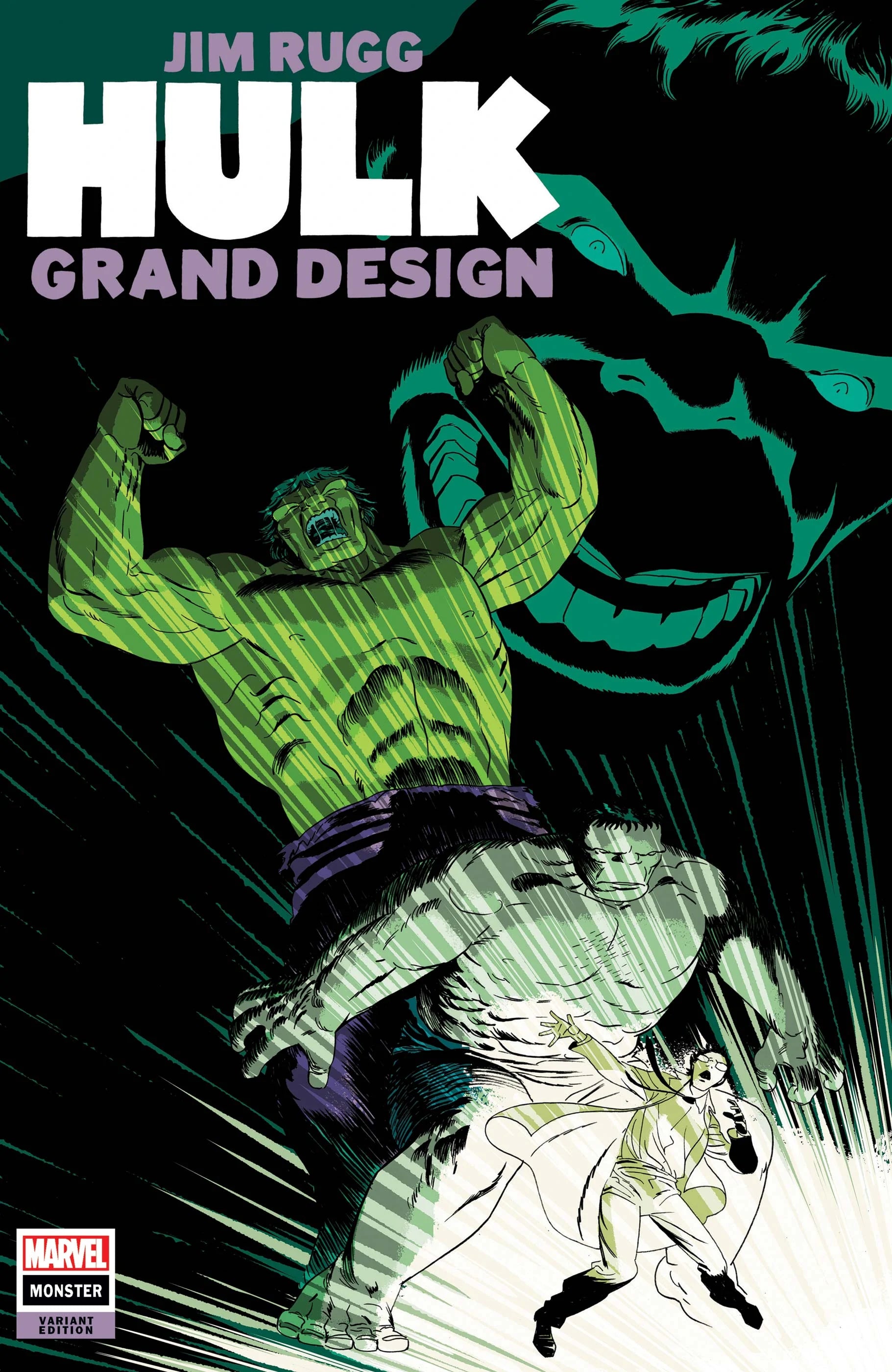 The acclaimed Grand Design franchise continues! Writer/artist Jim Rugg follows in the tradition of Ed Piskor and Tom Scioli by unfurling the full saga of THE INCREDIBLE HULK, from the very beginning to the present! Witness the biggest moments in the Hulk’s history through the eyes of a single visionary storyteller!