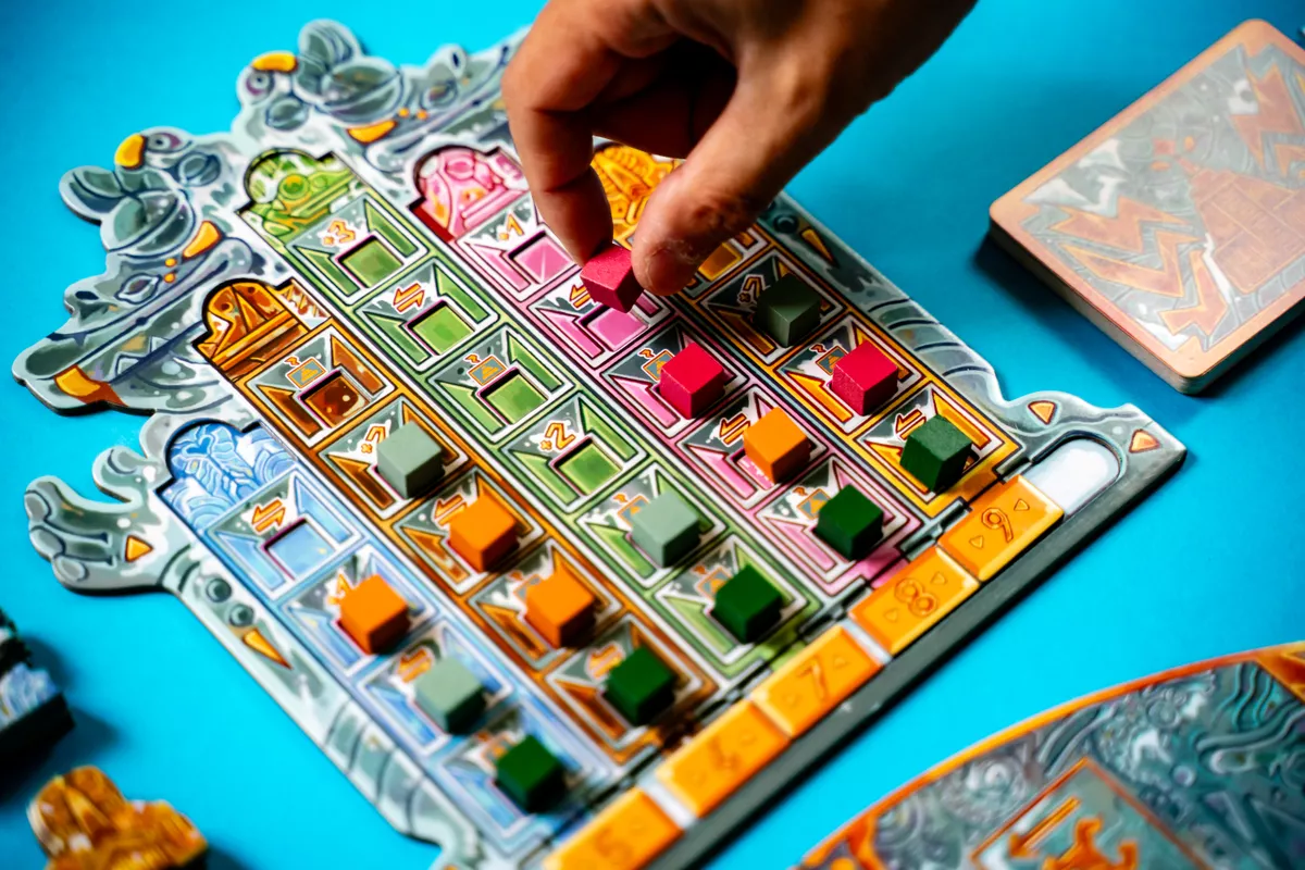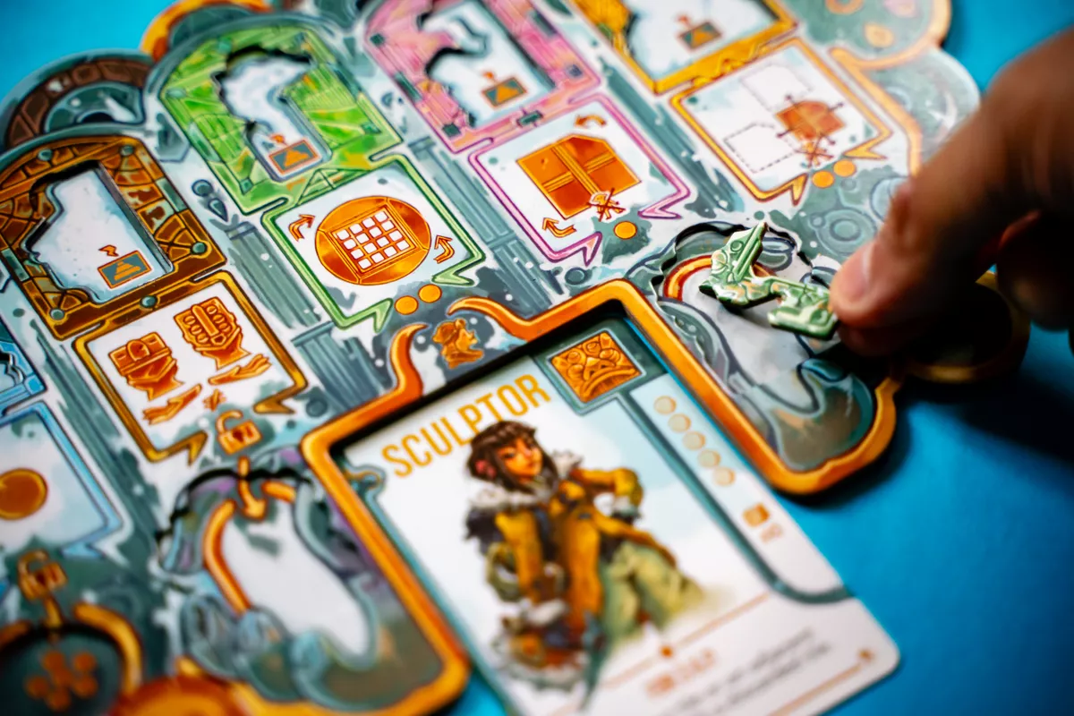 “Ice and Idols” is a unique pick-up and deliver game for 2-4 adventurers with a twist—literally! Rotate the temple ruins and manipulate pathway tiles to your advantage, strategically positioning yourself to research the Idols and harness their hidden powers. Every move you make could lead to groundbreaking discoveries or unforeseen obstacles.