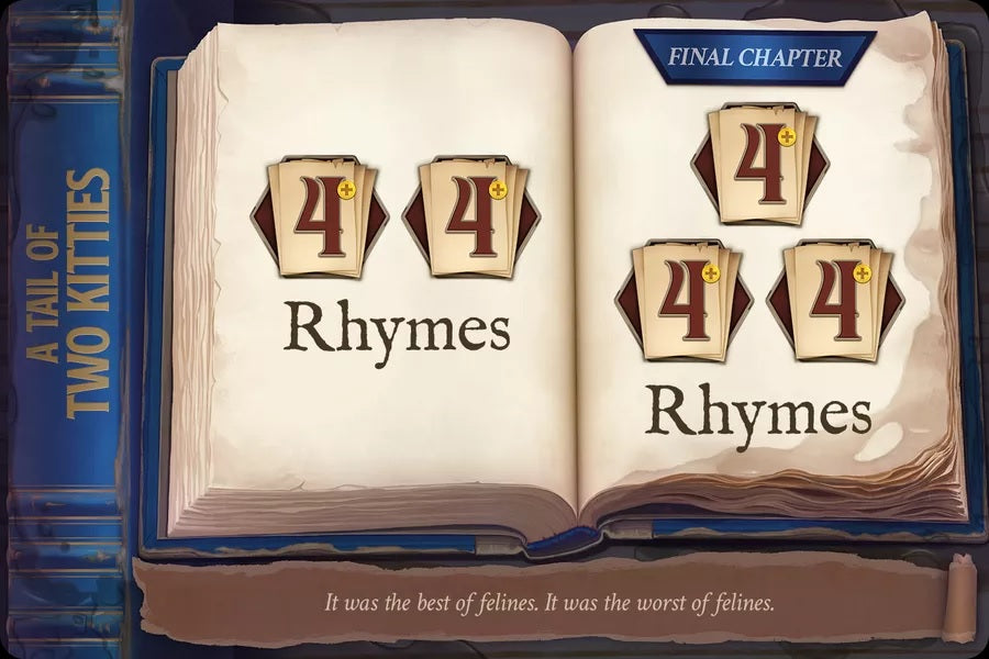 To win, each players must first bind his/her own books. Then, all players must coordinate their efforts by tackling one epic book together called the Final Chapter). All players lose if too many letters are burned or the Illiterati Villain Deck is emptied.