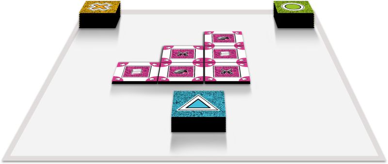 A clever mix between tic-tac-toe and rock-paper-scissors! Players take turns clockwise. On their turn, they either place a face up tile OR place a face down tile. If they cannot do neither, they show their tiles and pass (draw 2 tiles). Each face up tile must be placed adjacent to an already placed tile as long as it remains within a 4x4 grid or 5x5 grid. If you place a new Front tile, you draw 2 Tiles, these can be covered by Back tiles. If you place a back tile it must "beat" a face-up tile by respecting Rock Scissor Paper. You do not draw and these tiles are “blocked”, because you cannot cover them. You have 2 different possibilities to win: by aligning 3 Front tiles of your colour or by aligning 3 Back tiles of your colour. Do not underestimate your opponents and pay attention to the game. Remember to cover all your fronts as victory comes in 2 different ways ! Linx also has a team game mode, in which two teams of 2 players compete.