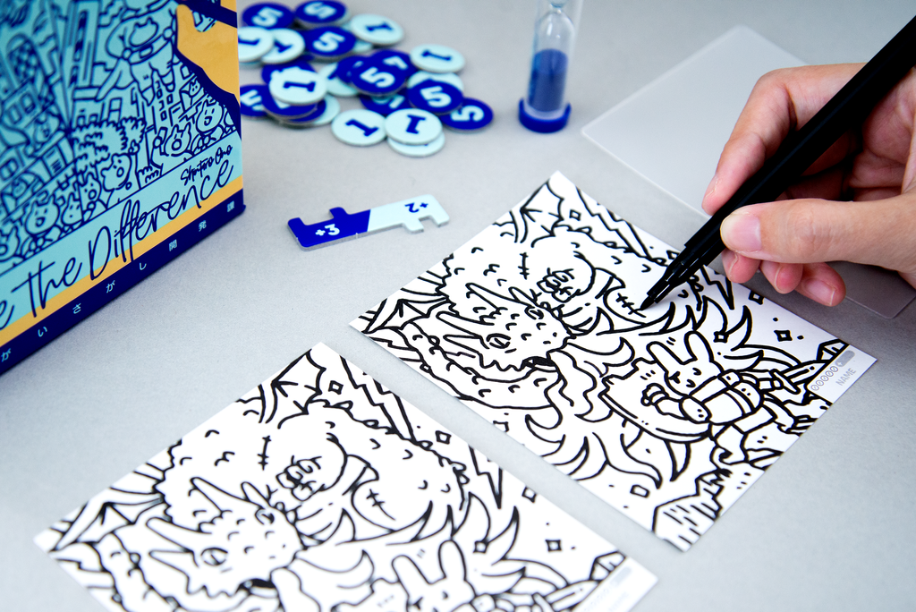 In 間違いさがし開発課 (Machigai Sagashi Kaihatsuka), roughly "Mistake Search and Development Division", the players are drawing differences on copies of photos, and the other players are trying to spot the differences.