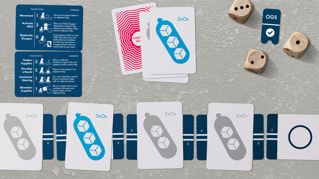 You are trapped on the moon due to a massive magnetic storm originating from the sun and all of the supplies have been scattered about the surface. You and your fellow astronauts are desperately trying to recover the scattered supplies, all while your oxygen levels are falling. Moon Adventure is a cooperative board game where everyone must work together to complete the mission. Trust in your wits and your friends to make it back alive!