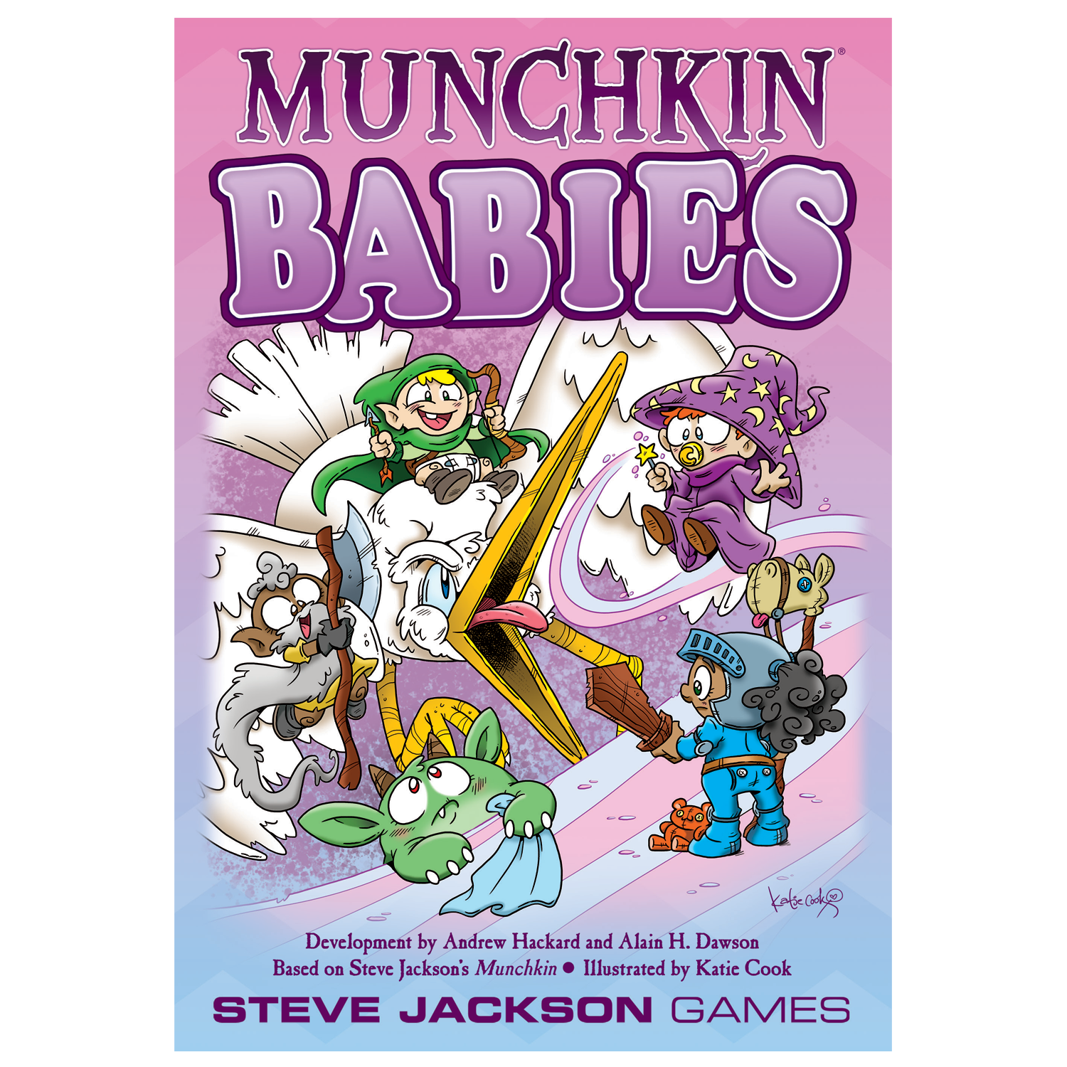 Munchkin Babies delivers 168 cards full of sweet, adorable baby adventurers . . . who are just as good at backstabbing and loot-grabbing as their elders from Munchkin. Play a cute Orcling, Dwarfling, Elfling, or Quarterling (half a Halfling). Go to preschool to learn your Class: Wiz Kid, Ankle Biter, Crumb Snatcher, or Holy Terror, and then arm yourself with the scariest items from the toy box: the Kazoo of Constant Whining, Kid-Safe Stabbinator, Blame-Resistant Pajamas, and of course, the Extremely Pokey Spoon. You must fight fearsome monsters such as the Jealous Kitty, the Hootin' Nanny, the Napmare, and, worst of all, the Pediatrician! Grab their treasure and crawl your way to Level 10!