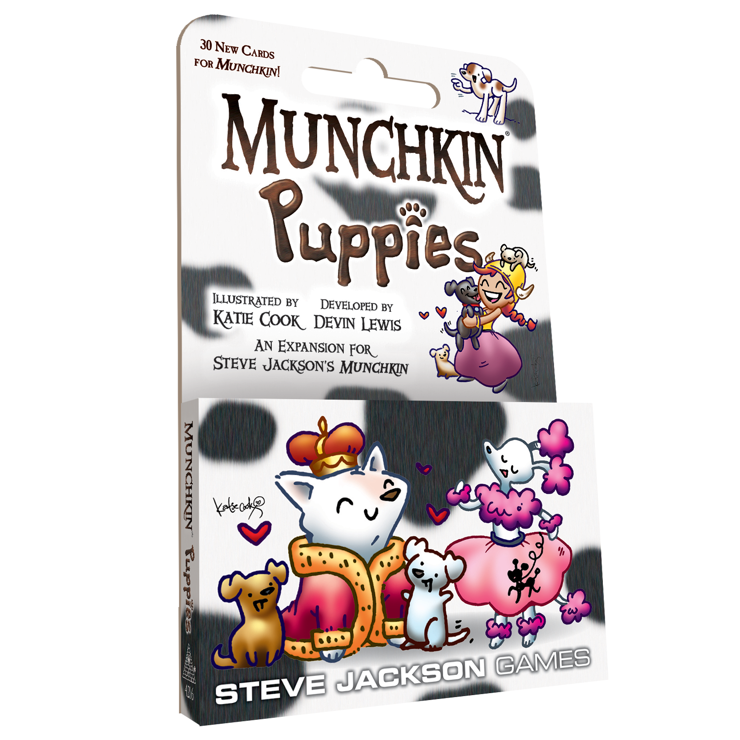 The latest in our series of Munchkin booster packs is also the newest double booster: 30 cards all about adorable, cuddly, evil puppies! (Um, forget that “evil” part.)