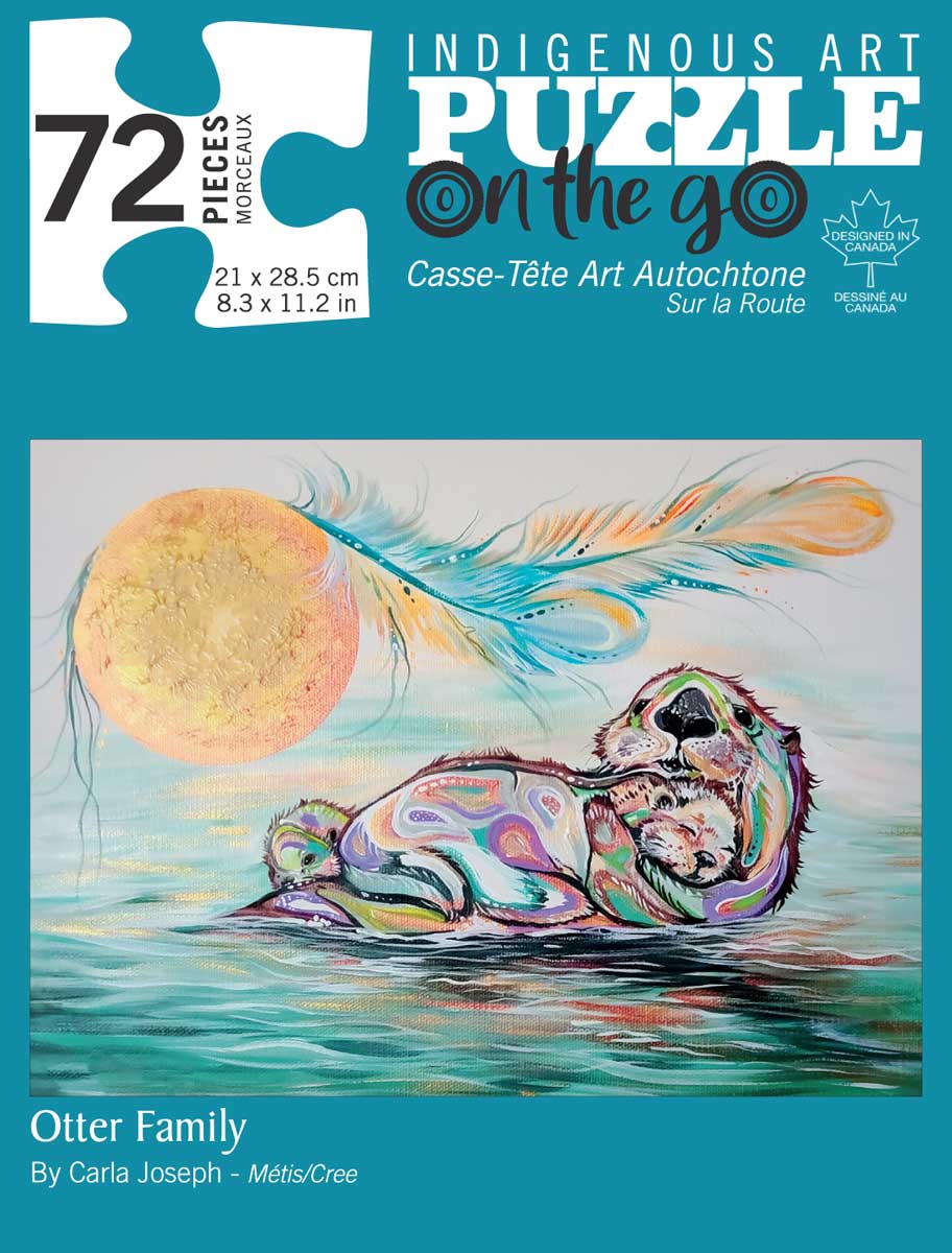 Otter Family 72 piece puzzle, by artist Carla Joseph. Her cultural background is Metis/Cree. The artist is paid a royalty on every sale.