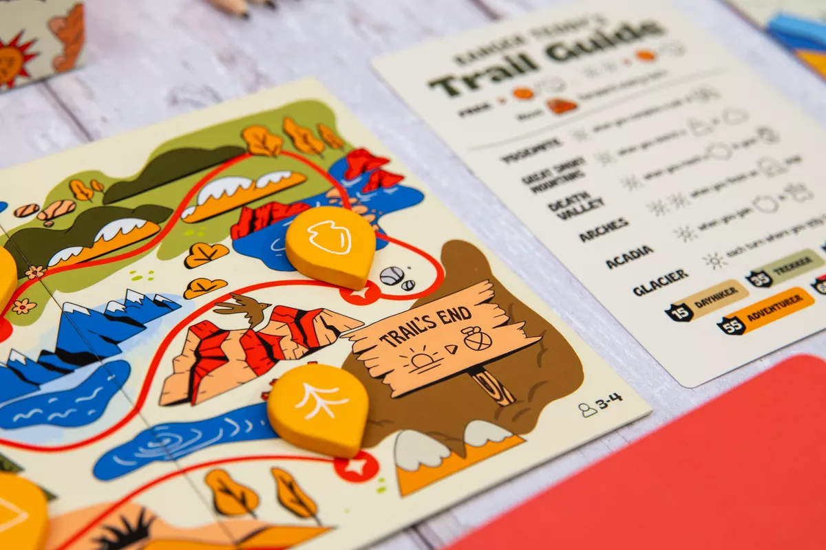 Parks: Roll & Hike features six US National Parks, illustrated by Andreea Dumuta, which bend the rules of the game and create a unique gaming experience every time you play. Revisit the world of Parks in its most portable, everyday carry format yet, with everything you need to toss it in your pack and hit the trails.