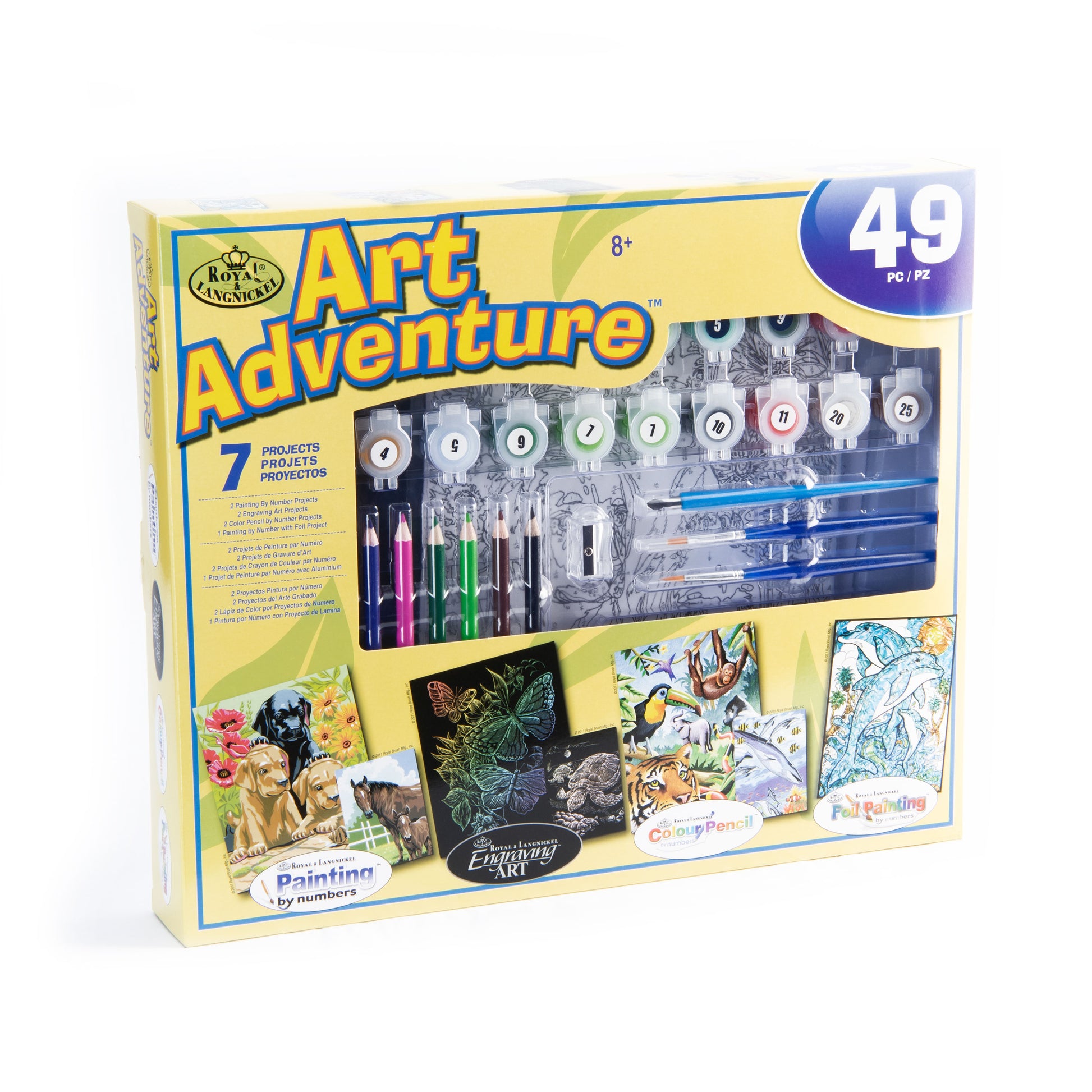 Start your Art Adventure® with this 7 project box set of Royal & Langnickel's most popular products. Each box contains 5" x 7" and 8" x 10" Engraving Art™ designs, Painting by Numbers™ designs and Colour Pencil by Numbers™ designs with a bonus Foil Painting by Numbers™ design.