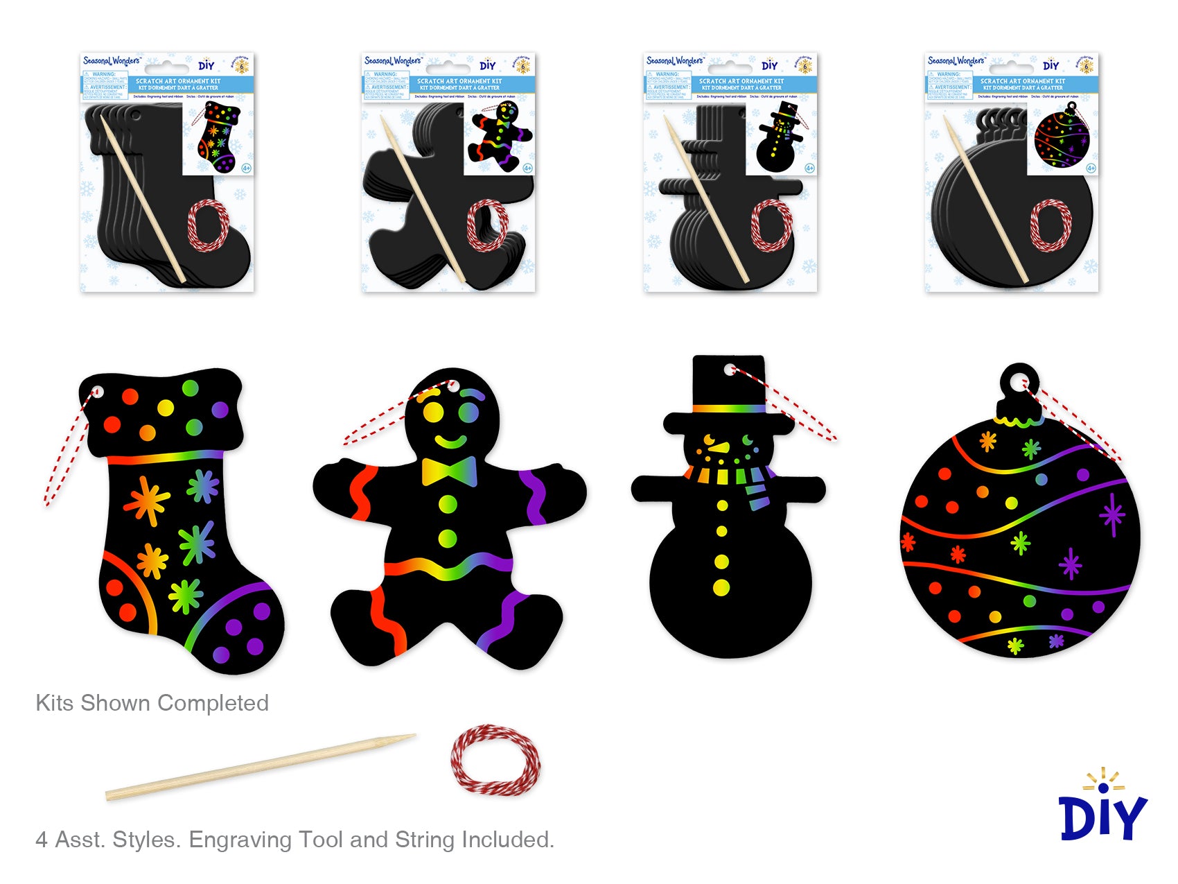 Create a beautiful work of art as you etch away the black coating and reveal the vibrant colors beneath. Each kit includes everything you need to bring your ornament to life. Perfect for hours of Yuletide crafting fun!
