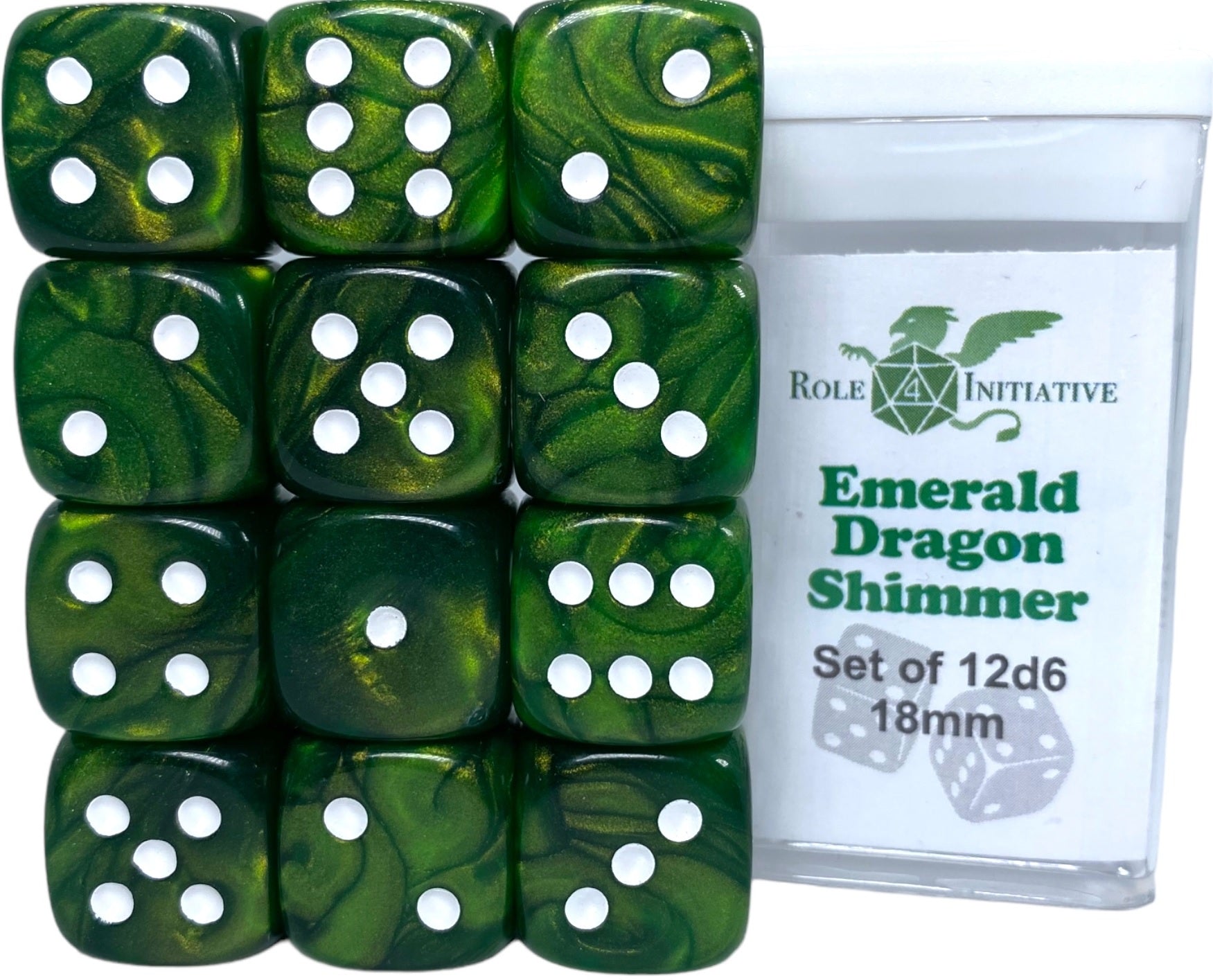 SET OF 12D6 PIPS DICE: EMERALD DRAGON SHIMMER 18MM