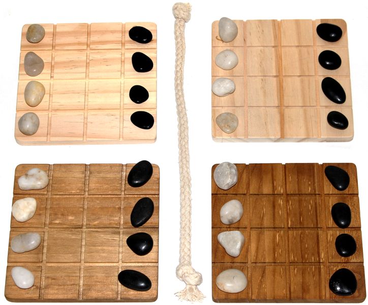 SHOBU is made of beautiful, natural elements, wood boards, a cotton rope divider and tumbled river stones as playing pieces, giving it incredible table appeal. Instantly familiar, yet wholly unique unto its own, it feels like a game that has stood the test of time. The rules are amazingly simple and can be learned in moments, yet halfway through your first game, you realize the game has a depth and spatial challenge similar to 3-D chess. Simply brilliant.