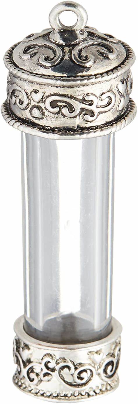 Solid Oak Pendants let you add a lot of style to your jewelry, craft and scrapbook projects. Steampunk Large Vial- There are ornate flourishes on the antique silver metal top and bottom caps. Top unscrews to insert meaningful objects in this glass vial. Measures approximately 5/8"x 2.5".