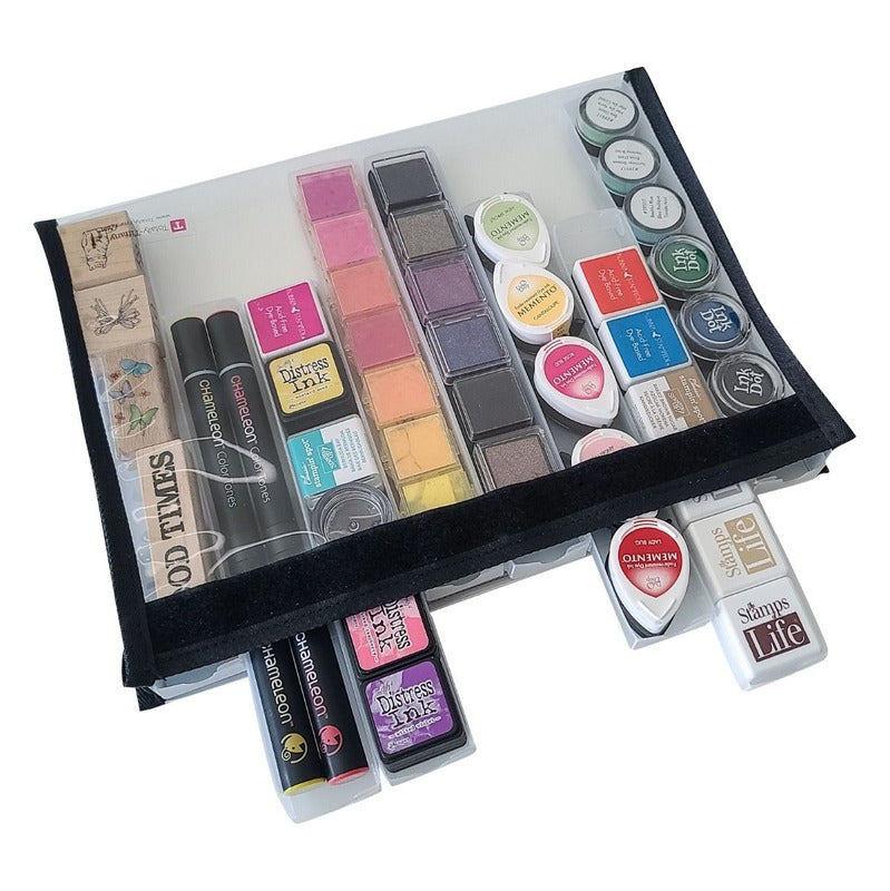 Each tray will hold up to 6 small square ink pads - Stamps of Life, Stampin' Up, Tim Holtz Distress inks - they'll all fit comfortably in this bag. A total of 48 small square ink pads will fit in each bag.