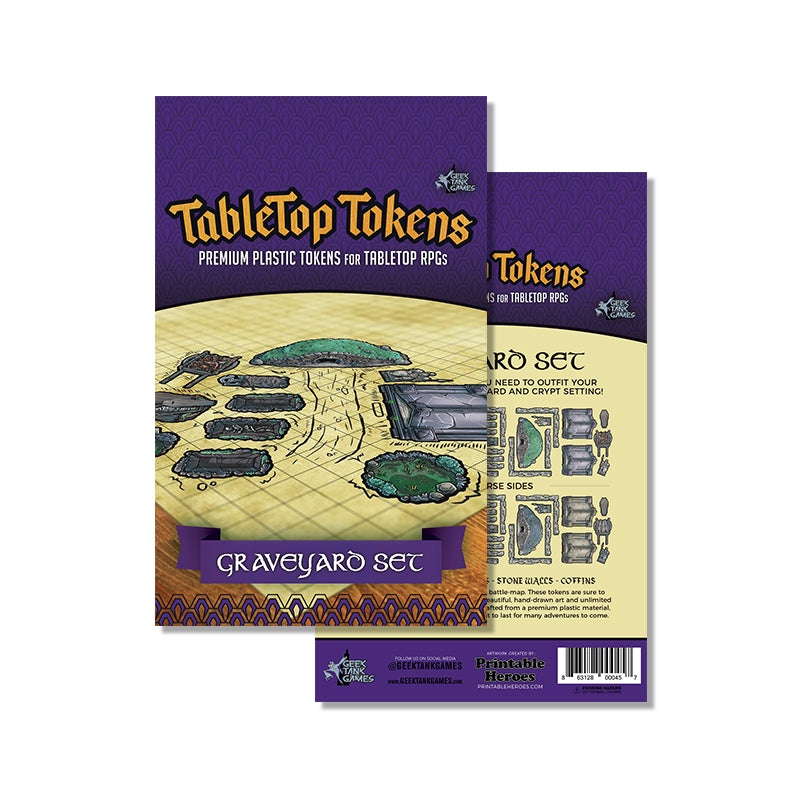 Graves, headstones, bogs, stone walls and coffins; everything you need to outfit your battlemap with a graveyard and crypt setting.