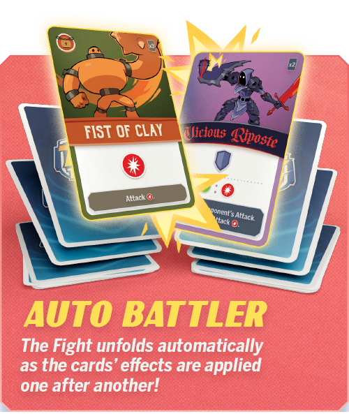 You start off with a deck of only 2 cards, and the Fight unfolds automatically: flip your cards one at a time and apply their effects. At the end of each round, you get to