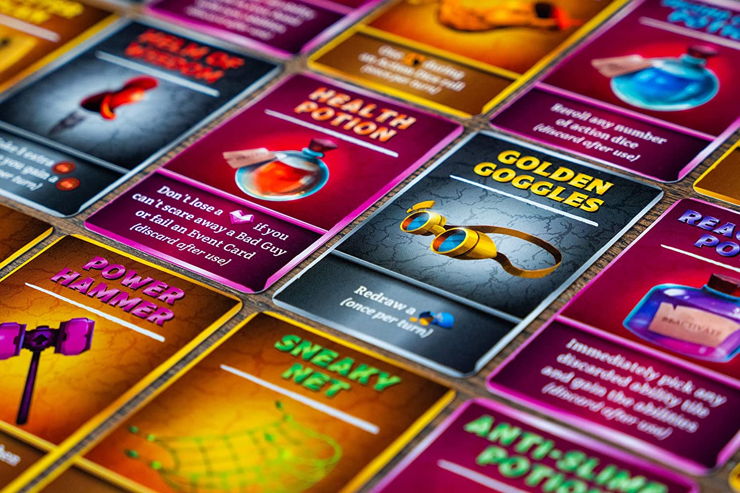The Quest Kids: Big Bads of Tolk's Cave introduces a new Quest Kid hero (Flint the Dragon), player specific dice, unique items, story-driven event cards, epic boss battles and more.