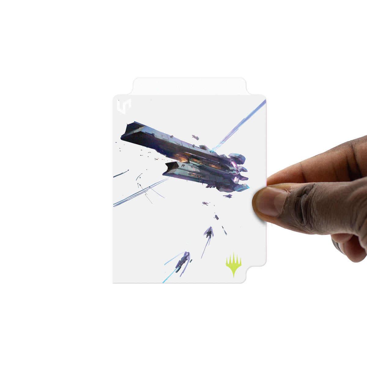 100ct Deck Protector Sleeves in Clear Box includes 100 Deck Protector sleeves, a transparent plastic 100+ Deck Box, and a deck divider, all featuring aligning artwork from Edge of Eternities. The sleeves are made using Ultra PRO’s proprietary ChromaFusion technology to minimize delamination, and the 100+ Deck Box and divider are made from a clear rigid polypropylene material. All materials are non-PVC and archival-safe to provide premium protection.