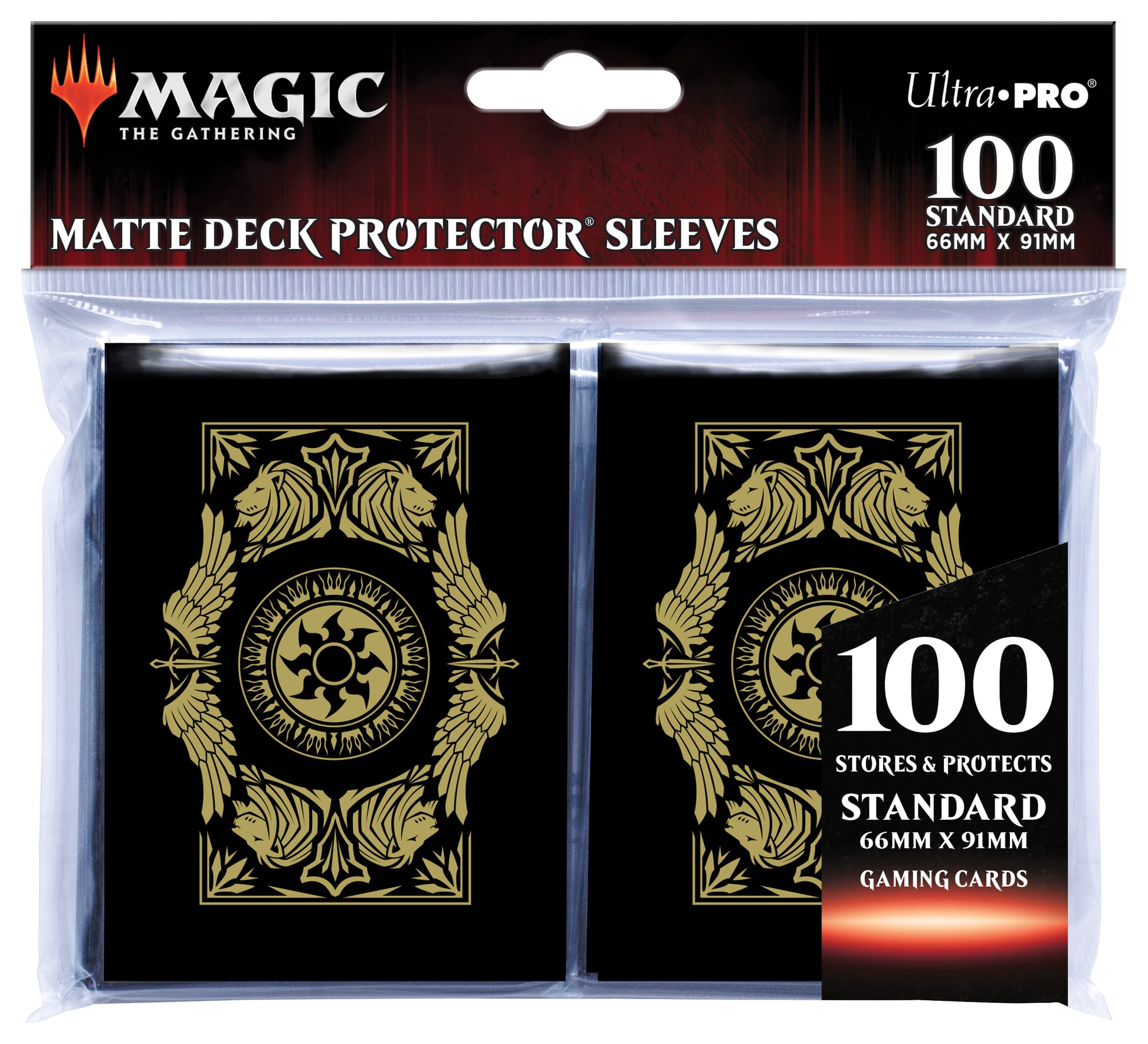 Ultra PRO's 100ct Deck Protector sleeves for Magic: The Gathering feature full-color, metallic artwork and are made with our proprietary ChromaFusion technology to prevent peeling. Archival-safe polypropylene materials ensure you can sleeve your cards with confidence. Sized for standard size trading cards measuring 2.5 in. x 3.5 in. The matte finish offers a glare-free, camera ready play experience!